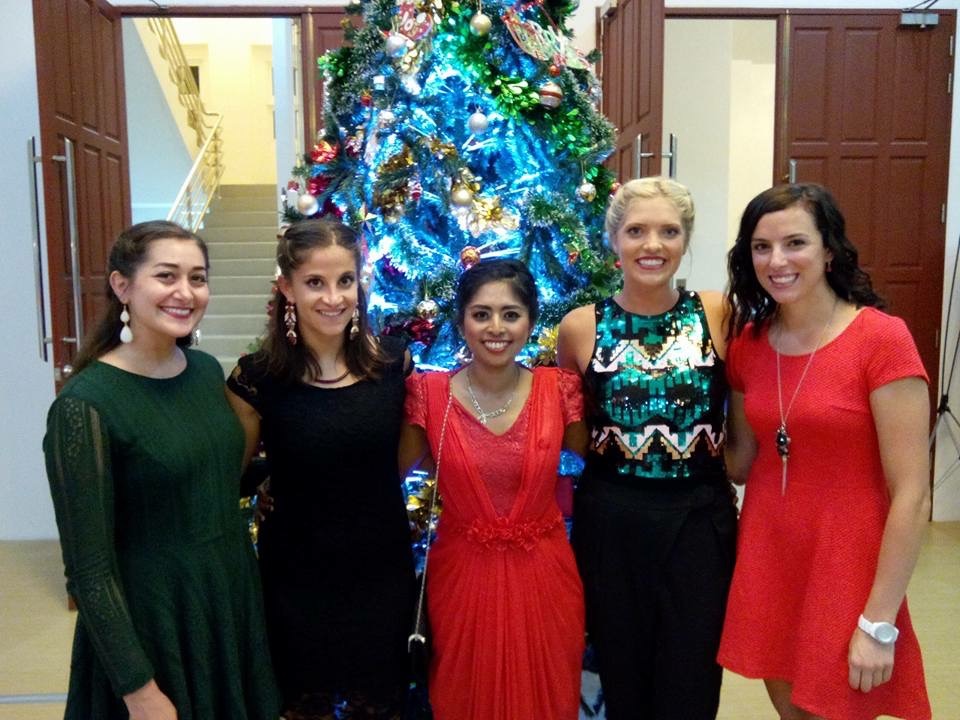 As I mentioned earlier in this post about the crazy craziness of the holiday craze… well, it has been mostly fueled by the preparation for our school’s Christmas Concert and Gala. Now, this was no ordinary school Christmas concert. Our school went BIG. Many Thais absolutely love Christmas and everything about Christmas. Our school decided to throw a huge concert/gala where each class performed a Christmas song, dance or musical act, followed by a whole school finale dance to the High School Musical theme song. All staff, families and friends who attended had to dress in red or green themed formal attire. They had a classy hotel restaurant cater the gala and had quite the spread. For the past month, our school has been getting totally decked out with Christmas lights and all sorts of decorations around all the campus buildings. They even set up a humungous (mall-sized) Christmas tree at the school entrance, where prior to the start of the concert, they held a tree lighting ceremony. Class teachers worked hard at preparing their class’s performance for the last couple of months. My class performed Frosty the Snowman and they were FANTASTIC! I am so proud of them. They loved dressing up in winter clothes since they never have any chance to wear winter clothing otherwise! However, I did feel a bit guilty for the costume choice when I saw them getting super sweaty walking around campus in full costume amid the tropical heat, but gosh were they cute!! Our male western co-teachers had been preparing a big, secret performance for the Christmas Concert. They call themselves the Blooms Boyz and like to pretend that they are a boy band, but that’s mostly because the Thai staff loves them and thinks that they are a boy band, or look like a boy band. They put on a hilariously perfect performance of “Last Christmas” with a huge, ridiculous “Blooms Boyz” backdrop. The Thai girls loved it <3. It was an incredibly impressive and fun night and it definitely helped me feel like Christmas is coming even though I am so far from home!